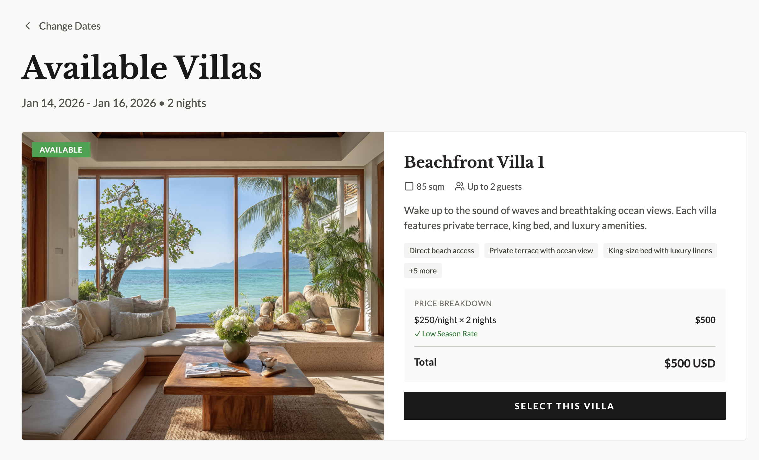 We wanted to show what's possible when a boutique resort owner can build their own booking platform — through conversation, not code.